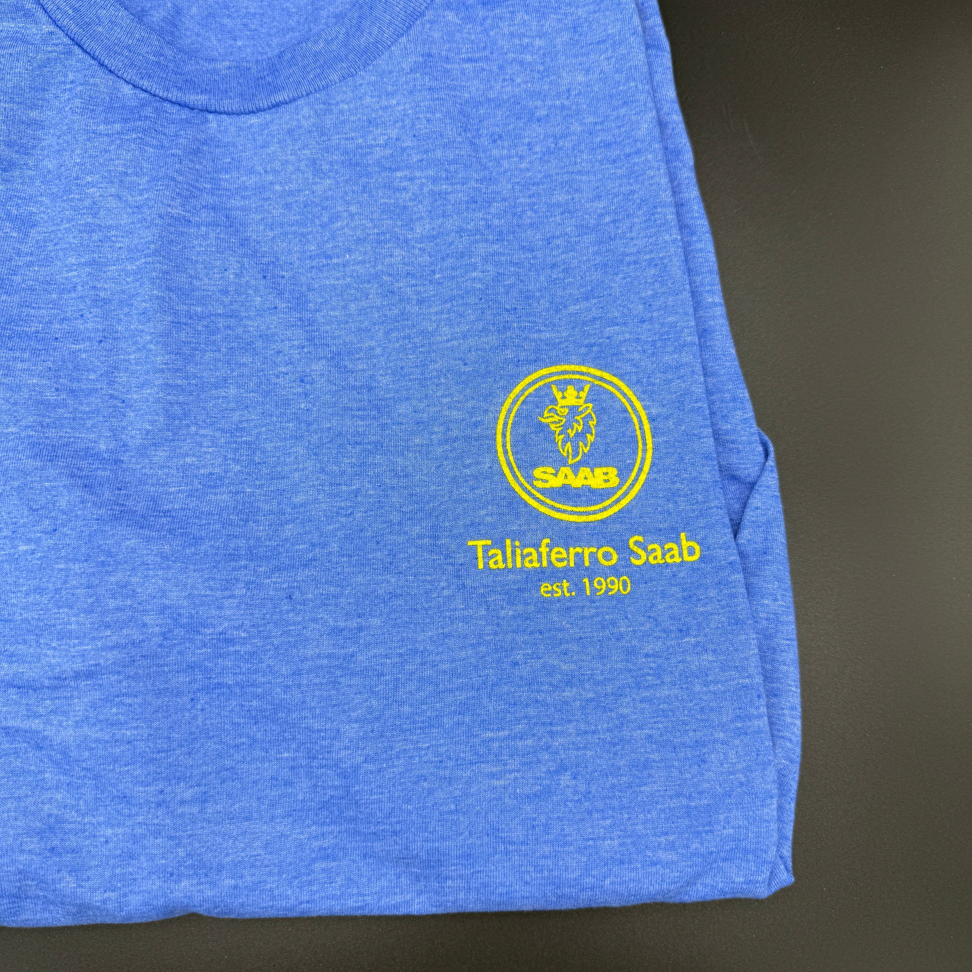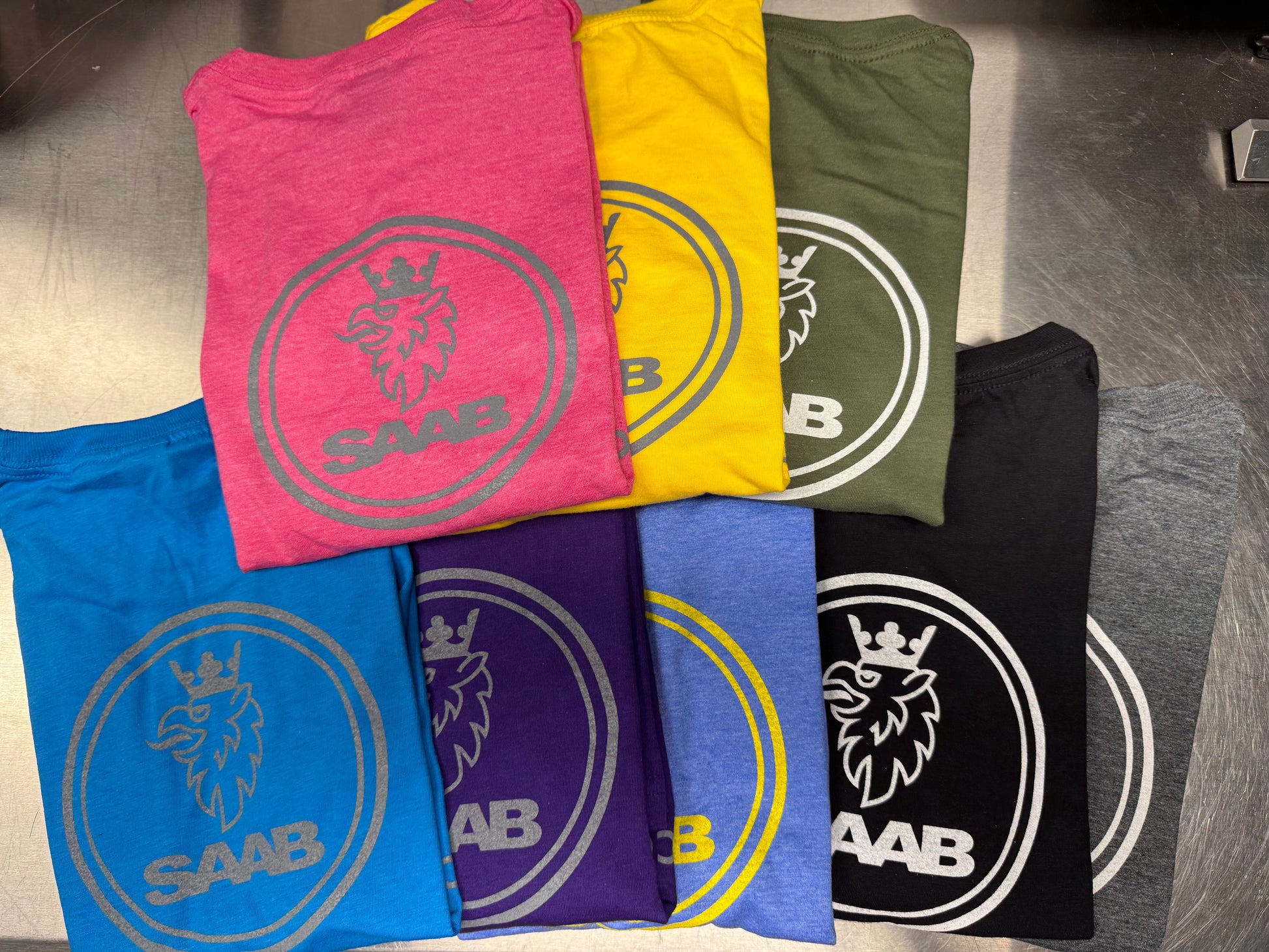 "Griffin" T-Shirt. Dark grey and Vintage blue shirts are 65% polyester and 35% cotton. Black is 100% cotton Sapphire (Bright Blue Silver )is 50% Polyester and 50% cotton. We have some new colors this time around. FREE WITH $250 ORDER Use Code: FREESHIRT
