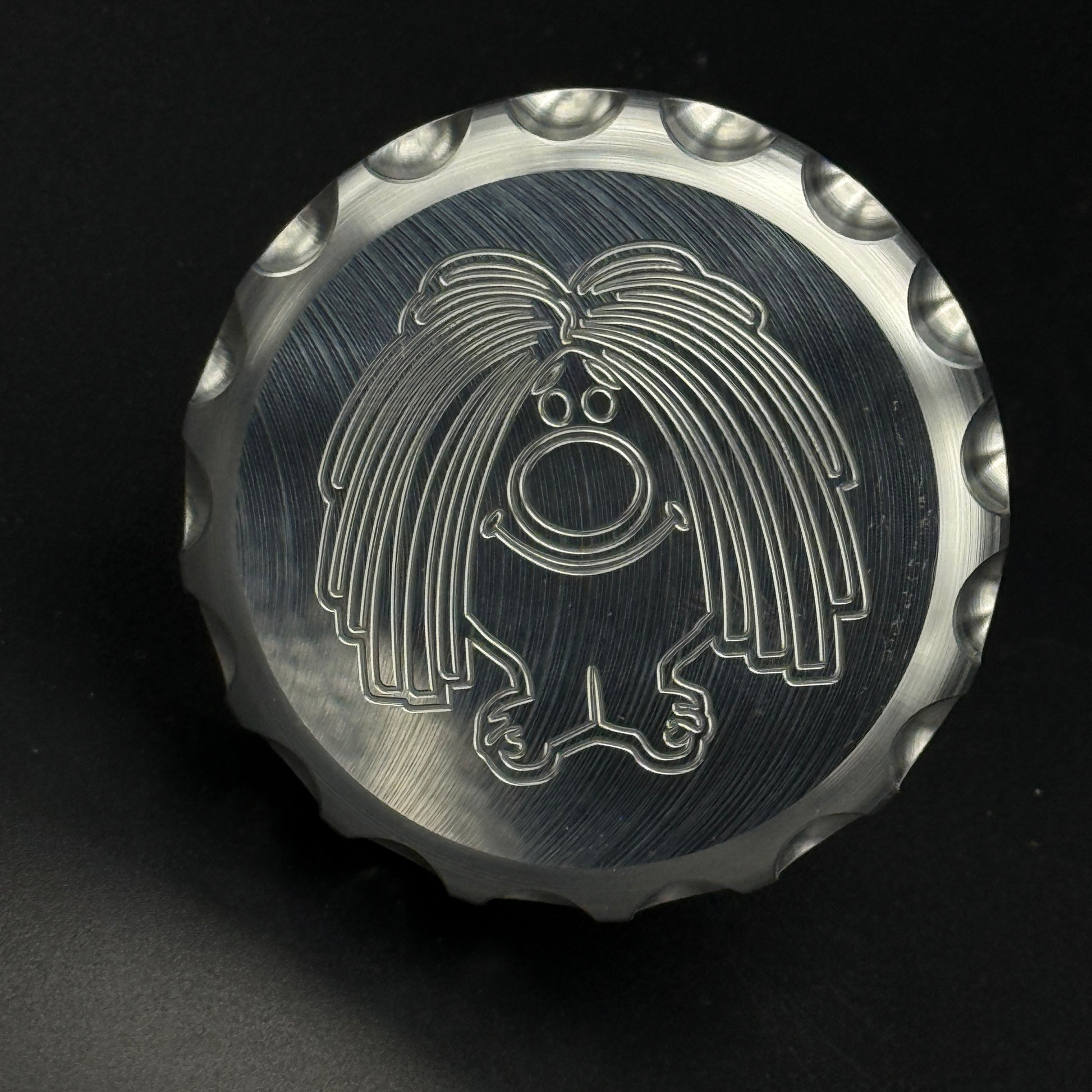 Directly replaces the original oil fill cap. Fully CNCd of aluminum in house. Shown standard machined finish