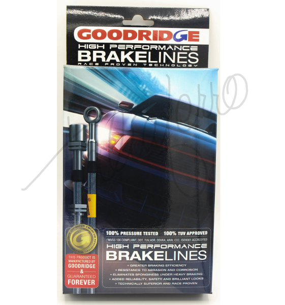 Goodridge DOT approved High performance Brake line Kits Stainless Over braid with PTFE liner. Finest quality. Eliminates spongy pedal under hard braking. Increases braking efficency. Sold per car set with applicable hardware. Other models available by special request. 40005 for NG900 94-98 and 9-3 99-02 +03CV including Viggen Models. (If you are using 300mm rear brakes then you need those lines too. Nothing is duplicated.)