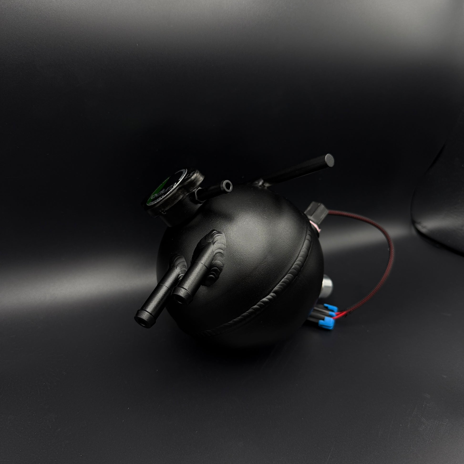 Coolant tank features all aluminum TIG welded construction. High quality Coolant cap retaining stock pressures(caps may vary). Even includes a float sensor with plug n play connector. Coolant tank is available with powdercoat for additional price.